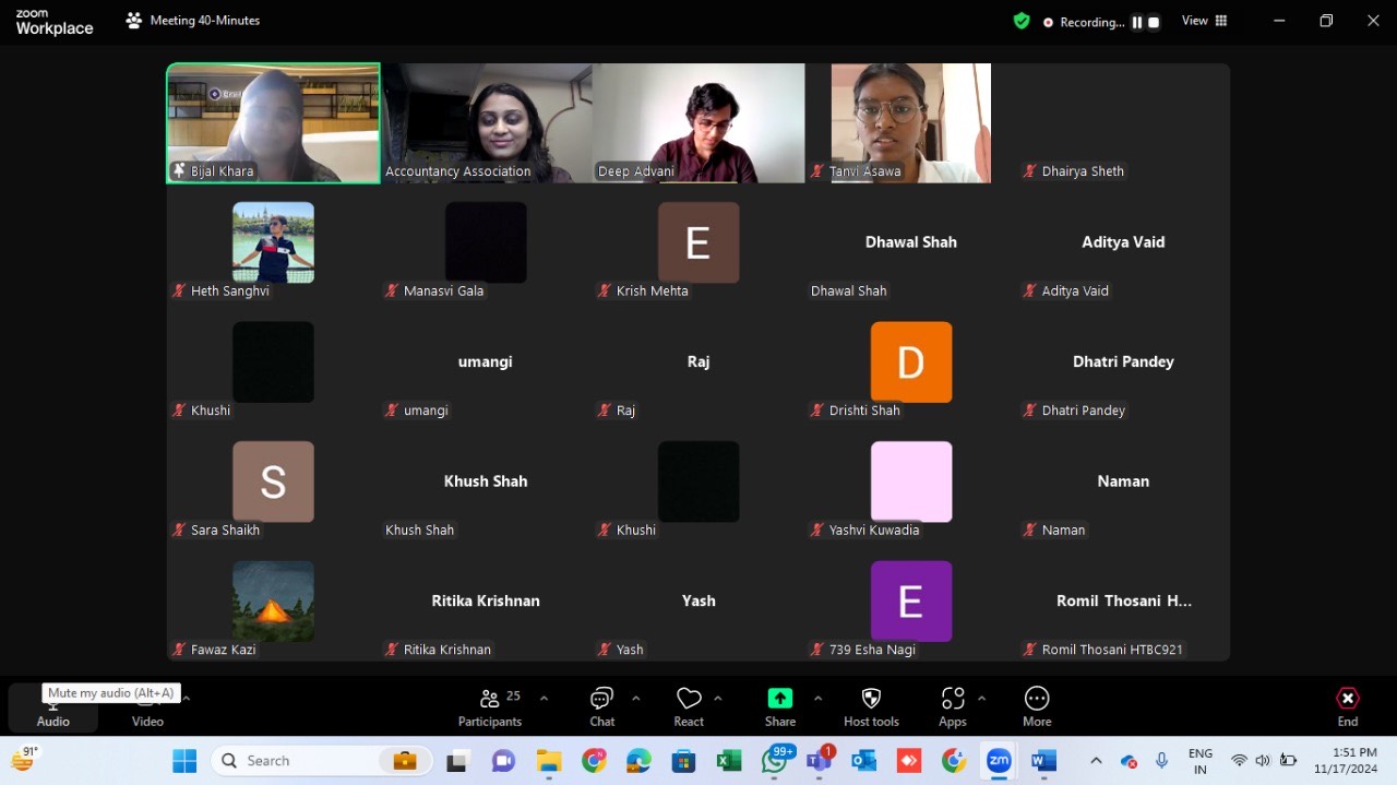 The Accountancy Association of H.R. College of Commerce & Economics successfully organised a webinar by Mr. Bharat Jeswani who with his 15 Years of experience in Forensic Accounting, Fraud investigations, Due Diligence, Internal Audits, Fraud risk management exposed the audience to various aspects of forensic audit.