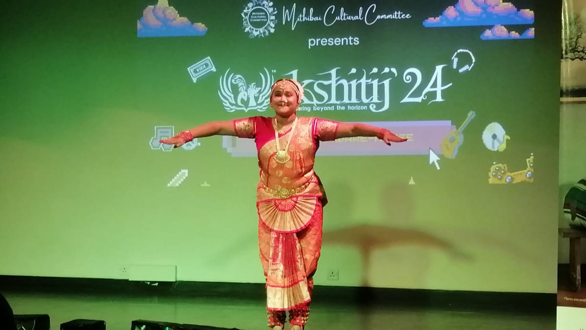 The Nrityanjali Committee of H.R. College participated in Kshitij 2025 at Mithibai College on January 9, where President Niharika Ghadigaonkar represented the team in the Classical Kali (Solo Classical Dance) event. Aligned with the event’s theme of depicting the stages of life—childhood, youth, adulthood, and old age—she delivered a captivating Bharatanatyam performance that combined grace, expression, and storytelling, leaving a lasting impression on the audience.