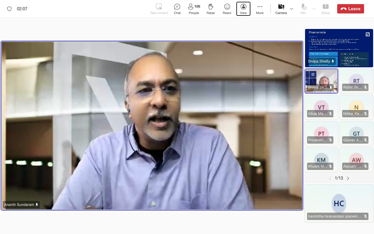 Mr. Siddhartha Shukla (Manager Campus Recruiting) and Mr. Anurag Bharadwaj (Executive Director) of Morgan Stanley gave a brief introduction about the company and its policies. The students were briefed about the company's virtual analyst program and virtual intern program. Mr. Siddhartha explained to the students about the virtual campus recruitment process that will be followed and about the platforms, the students could connect.