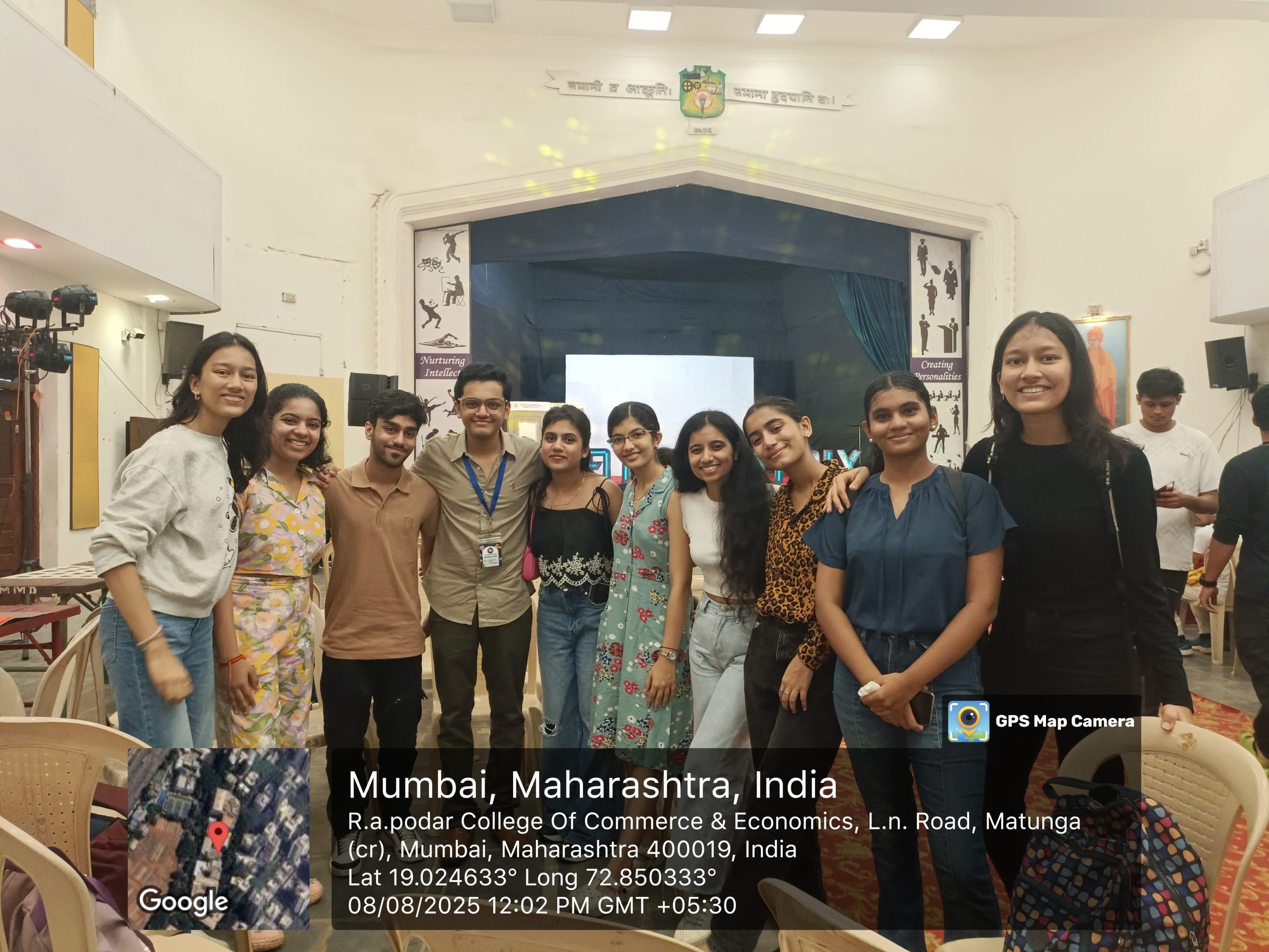 The Public Speaking and Debating Society (PSDS) of H.R. College participated in Arthanomics 2025, the annual economics festival of Jai Hind College, held on the 5th and 6th of August 2025. Led by Contingent Leader Mannat Agarwal and Assistant Contingent Leaders Pranjal Jain and Vanya Gowani, with guidance from President Kritika Somani, the contingent comprised 55 participants. Organized by the Economics Department of Jai Hind College, this year’s theme, “Alt Econ: Beyond the Curve,” focused on sustainability, policy reform, and the future of global economies. The two-day festival featured stimulating debates, simulations, business challenges, and creative competitions, offering a platform for students to display their analytical, oratory, and problem-solving skills.