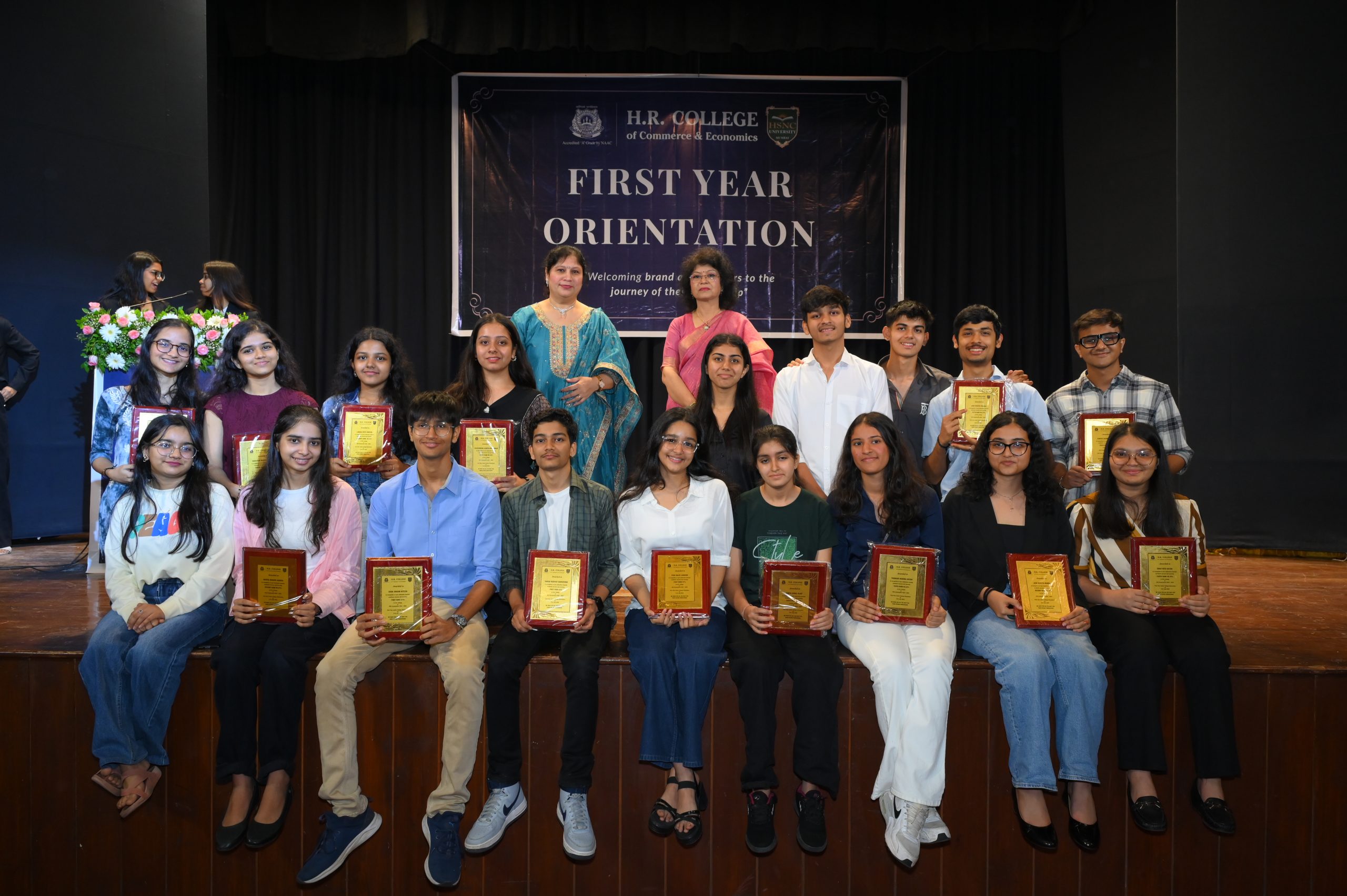 H.R. College conducted the First Year Junior College Orientation at the Rama and Sundri Watumall Auditorium, welcoming new students with cultural performances and an introductory video showcasing the college’s achievements. Principal Dr. Pooja Ramchandani, Chief Guest Dr. Maya Shahani, and Guest of Honour Mr. Unmesh Jadhav shared motivating insights with the students. The event featured the release of the Alumni Directory, Voyager magazine, and the 5th volume of the Anthology, along with felicitation of academic achievers and induction of the Sports Council. The orientation concluded with faculty introductions, academic guidance, club presentations, and a Vote of Thanks, inspiring students as they began their journey at H.R. College.